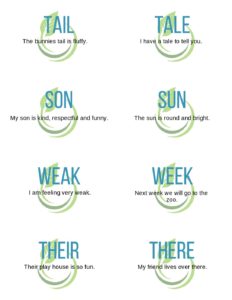 Homophones Cards and Matching Game